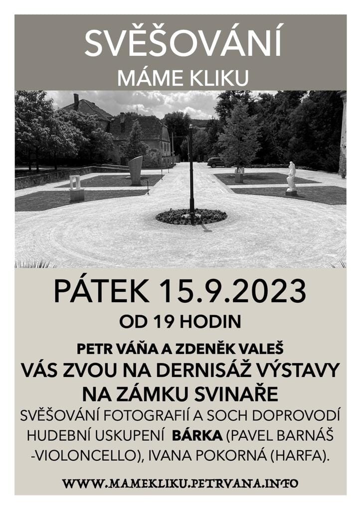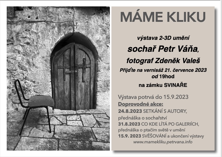 Výstava soch, to je jako když vezmete své kamenné myšlenky na procházku. Přijdou do nového prostředí, setkají se s novými lidmi, mohou si pohovořit. Léto je k tomu ideální. Výstava je domluvená. Na zámku ve Svinařích u Jiřího Noska pod širým nebem na nádvoří a v prostoru sýpky. Tam se potkají s fotografiemi Zdeňka Valeše. Prostor je velký, mohou jít na procházku sochy malé i větší. Jdu shánět auto a jeřáb, vernisáž začíná v sedm hodin 21. července.